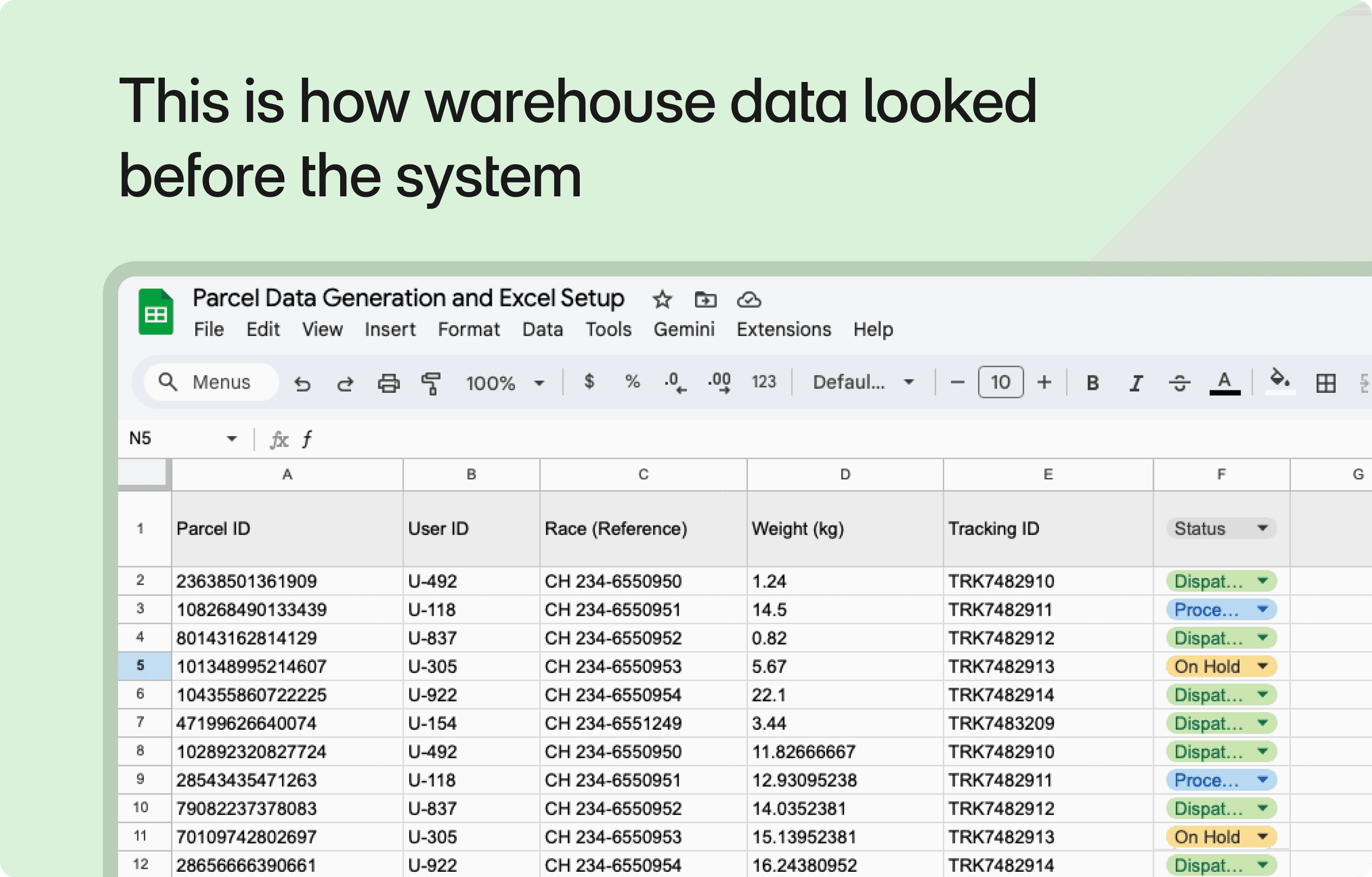 I replaced these ad-hoc processes with a single system to track parcel status and ownership in real time. By consolidating actions into one digital space, we eliminated redundant manual checks and made daily warehouse management predictable